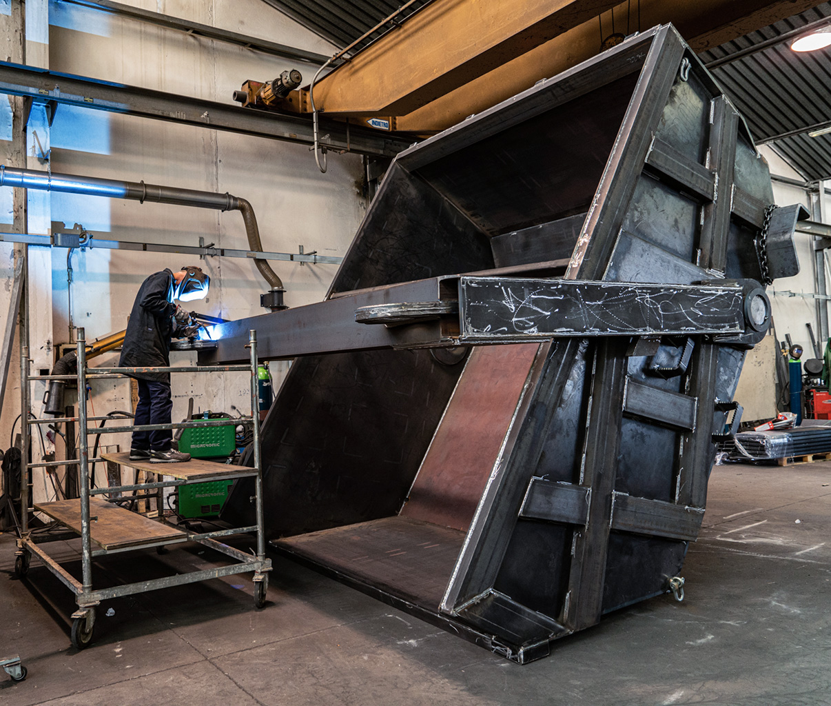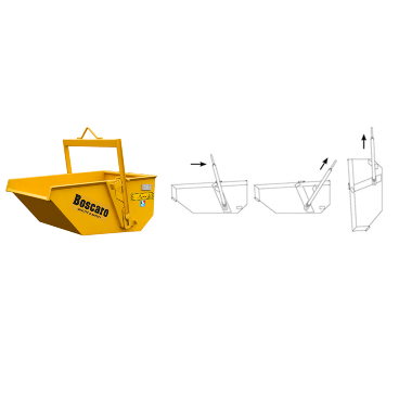 Benna di alta qualità a scarico automatico, che non richiede l’intervento manuale di un operatore in zona di scarico. La benna A-D è ideale per la movimentazione in cantiere di detriti e inerti.