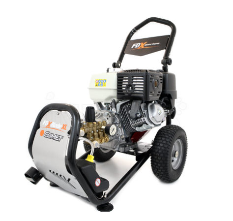L’idropulitrice Comet FDX Blade XL si avvale delle ottime prestazioni del motore Honda GX390, a 4 tempi con funzionamento a benzina. Questo motore ha una clindrata di 389 cc, con potenza nominale di 13 HP espressa in 9,7 kW. Il regime di rotazione del motore è di 3400 RPM, con lubrificazione a bagno d’olio, decompressione automatica e alimentazione OHV (a valvole in testa).