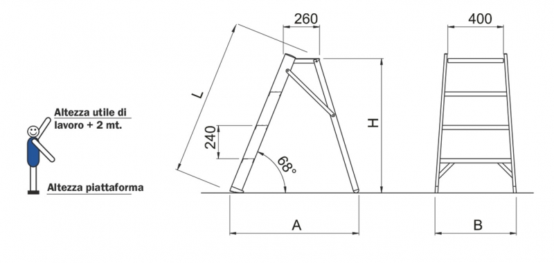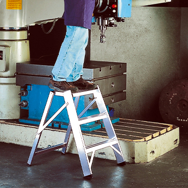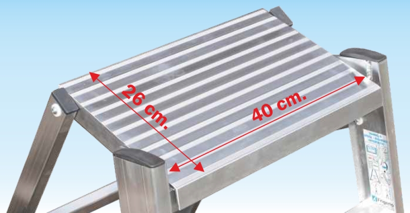 Ideale per interventi di manutenzione, garantisce una comoda posizione di lavoro sulla piattaforma realizzata 100% in alluminio con dimensioni maggiorate e una superficie anti-scivolo.