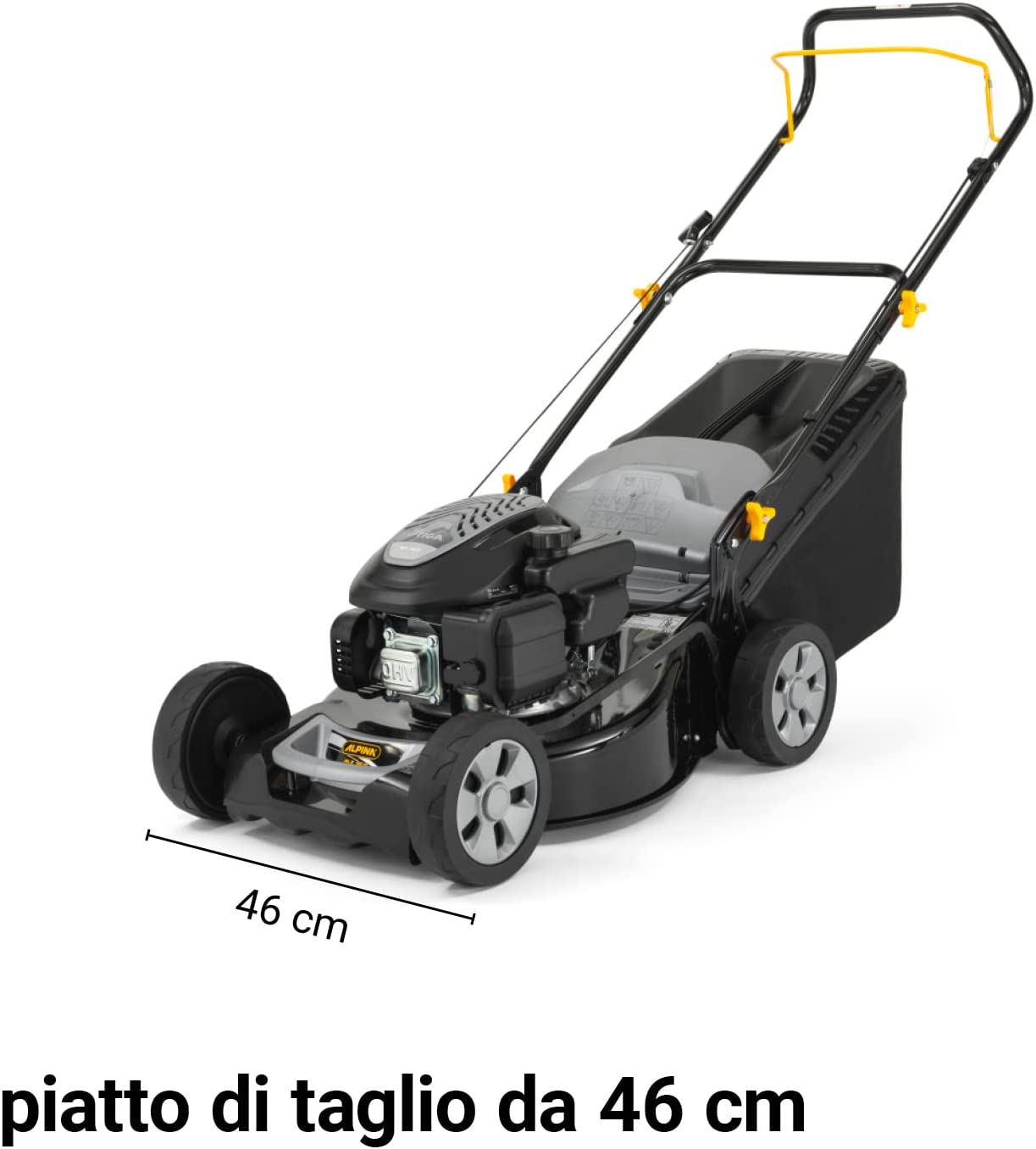 Con questo tosaerba a scoppio Alpina tagliare l’erba del vostro giardino non sarà più un dovere ma un piacere! È alimentato da un motore STIGA ST140 da 139 cc con avviamento facilitato.