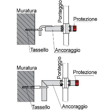 Elementi di collegamento tra ponteggio e struttura, muri, pareti, ecc..
