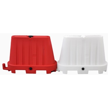 La barriera new jersey, è dotata di due tappi filettati, uno di carico, posto nella parte superiore ed uno di scarico posto invece nella parte inferiore.