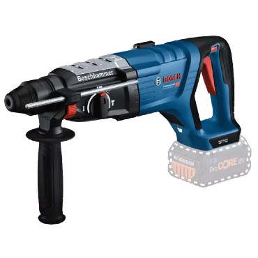 Questo martello è perfetto per forare cemento, pietra e muratura e ideale per forare in verticale e in basso grazie alla sua impugnatura a D. Il GBH 18V-28 DC è inoltre compatibile con tutte le batterie e tutti i caricabatterie da 18 V Bosch Professional (Sistema Professional 18V ).